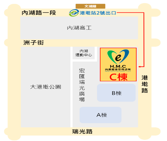 健檢地址:台北市內湖區瑞光路337號9~10F (宏匯廣場C棟 內湖運動中心旁/港墘路與跟洲子街轉角處(請點我進入GOOGLE地圖)